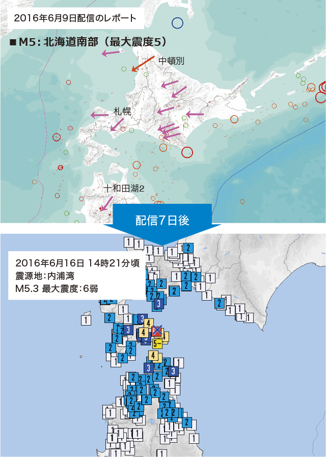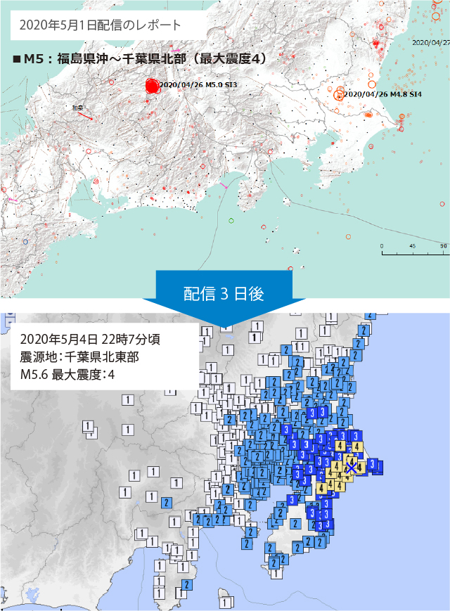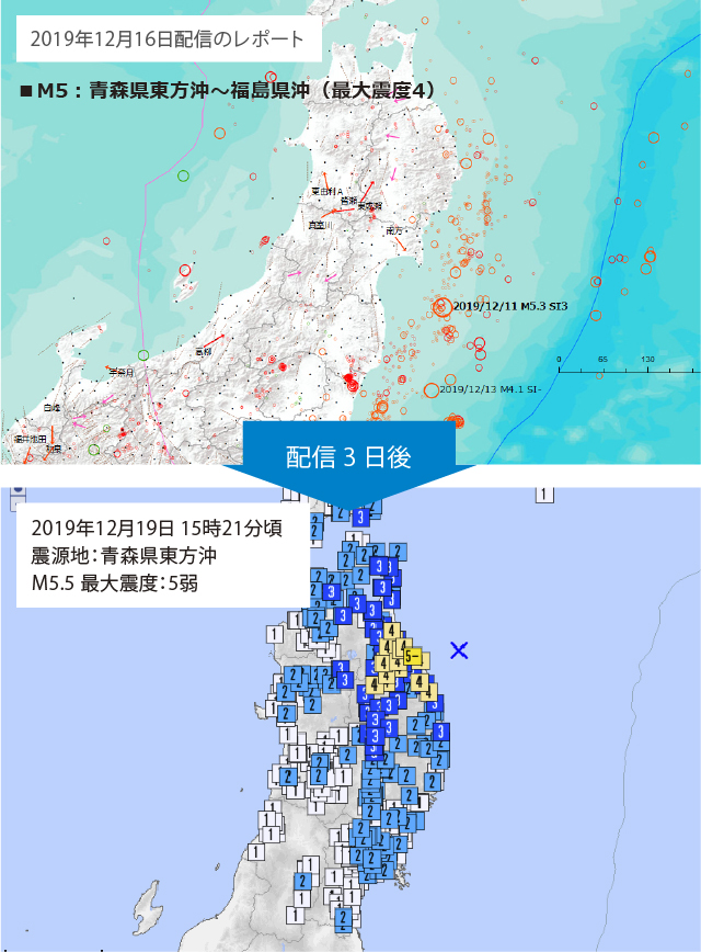 ここでは「地震予兆解析レポート」の配信後一週間以内に実際にM5以上の地震が発生した事例をご紹介します。