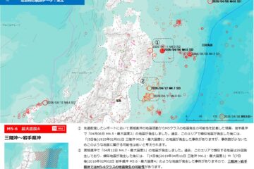 石川県では1月1日の地震発生以降活発な余震活動が継続しています。また、この地震による地殻変動が新潟〜岐阜にかけて広範囲でみられます。また、震源域の周辺でも地震活動が活発になっており、長野県北部で微弱地震が多発しています(2週間前2回→先週35回)。過去、このエリアで微弱地震が多発した後には「(18日後)2007年07月16日新潟県上中越沖 M6.8・最大震度6強」や「(4日後)2014年11月22日 長野県北部 M6.7・最大震度6弱」のような地震が発生した事例があります。