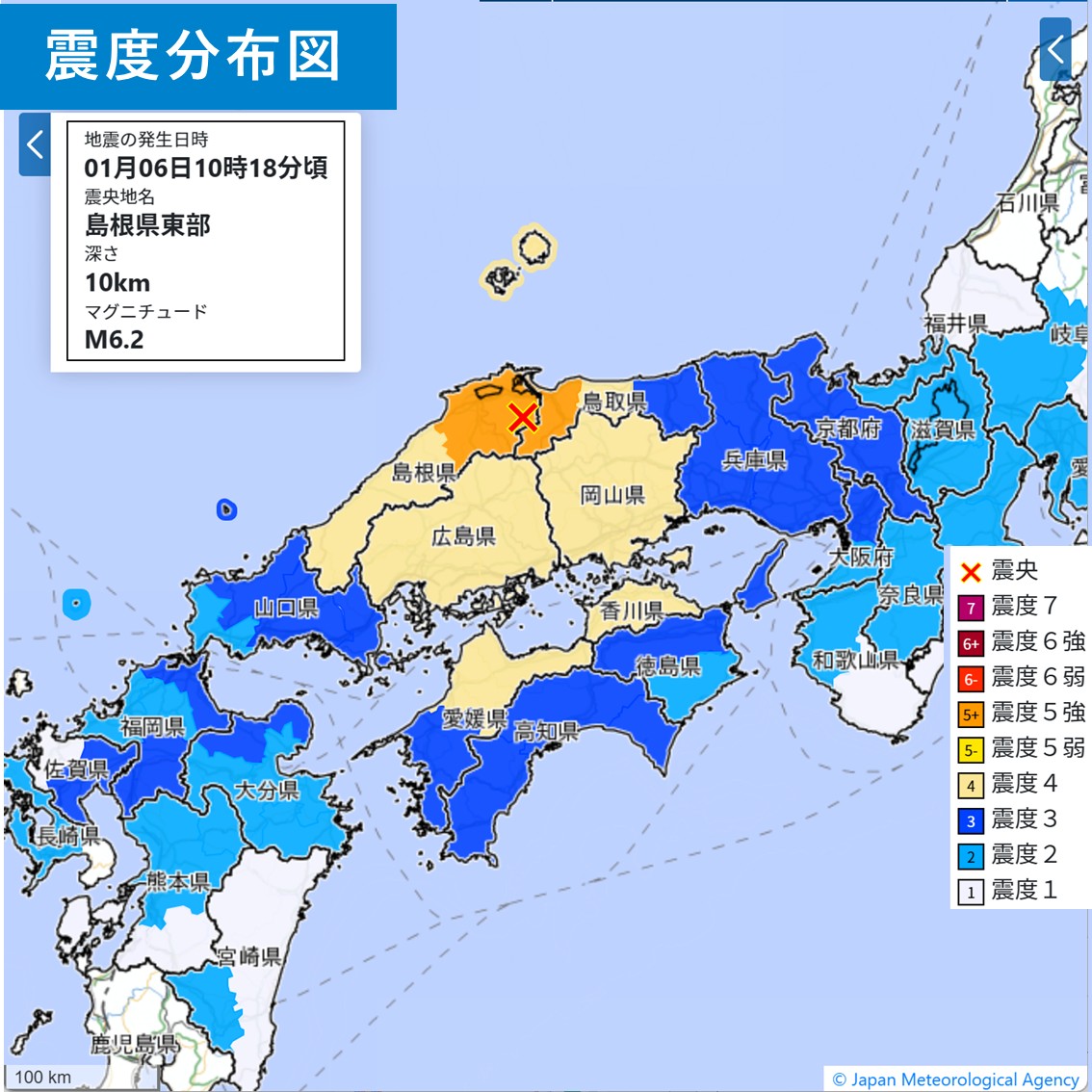 2026年1月6日、島根県東部でM6.4・最大震度5強の地震が発生しました。